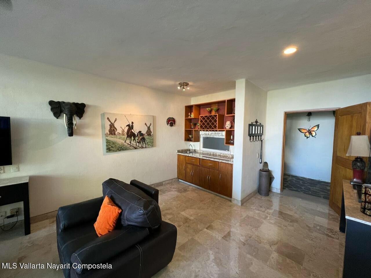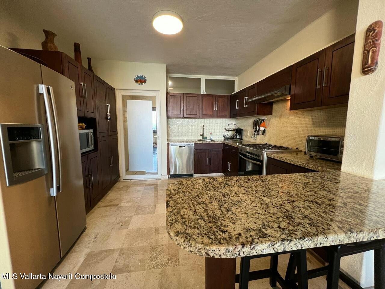 Located in the exclusive Terrazas del Mar in Colonia Amapas, this beautiful condominium comprises 10 units per tower that cascade down the hill. In excellent condition, it feels more like a house than a condo. With stunning views of Banderas Bay in a desirable area south of Zona Romantica, it is just a short walk to the beach and the town. The property offers 2 bedrooms and 2 bathrooms, along with a large terrace and a very spacious bodega. Luxury finishes including granite and marble kitchen countertops are featured throughout.. It has a back door entrance, Funicular and small front stairs, as well large back stairs for service. The secured building has on site administration and was featured on House Hunters International. Solid concrete construction equals lower a/c.