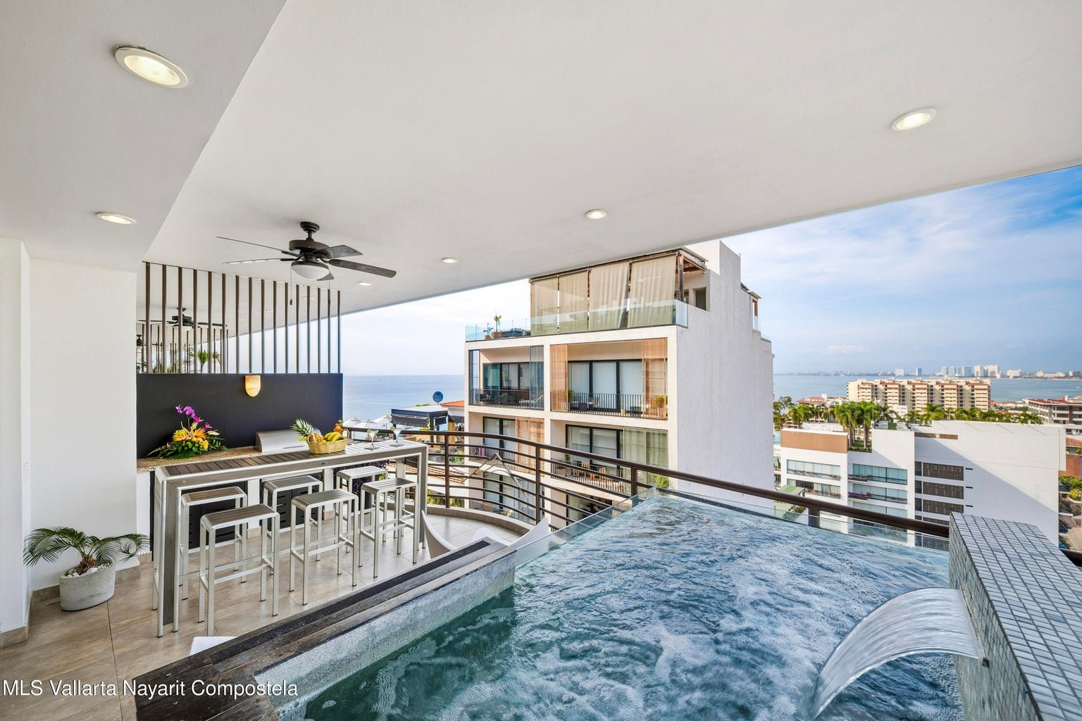 Nestled in the heart of Puerto Vallarta’s vibrant Zona Romántica, this townhouse boasts a private heated plunge pool and sweeping panoramic views of Banderas Bay. Set on an elevated hillside—one of the few buildings in Old Town constructed on elevated terrain—it offers breathtaking, unobstructed vistas of the bay that are truly a rarity in this sought-after neighborhood, all while placing you mere steps away from … world class restaurants, boutique shopping, dynamic nightlife, and Puerto Vallarta’s beautiful beachescombining privacy with convenience.