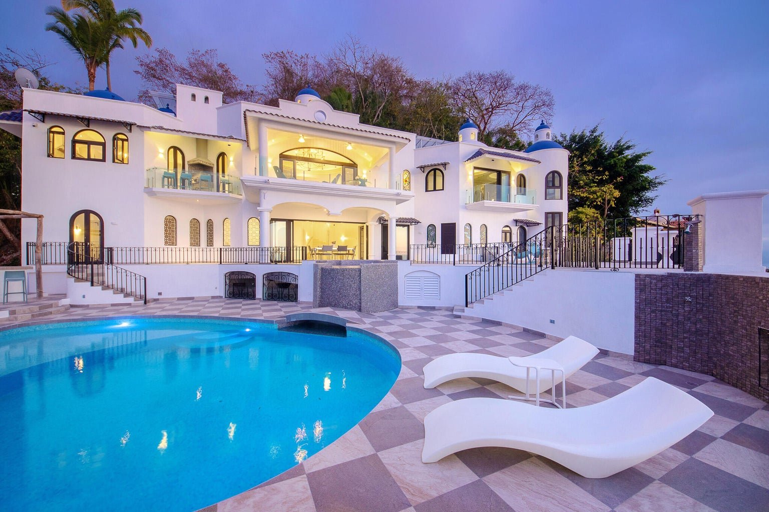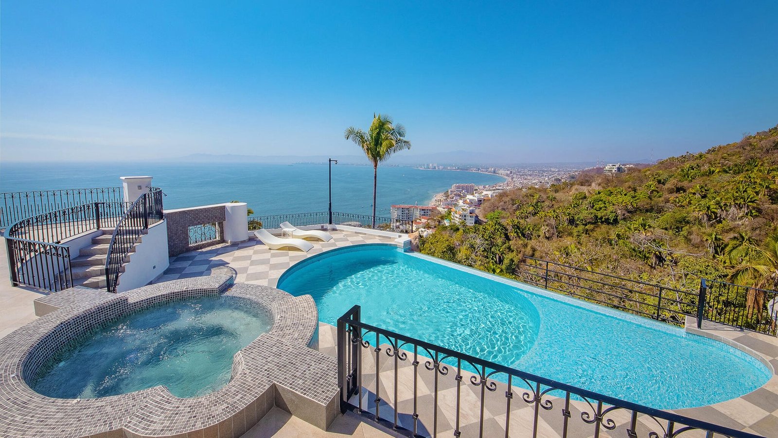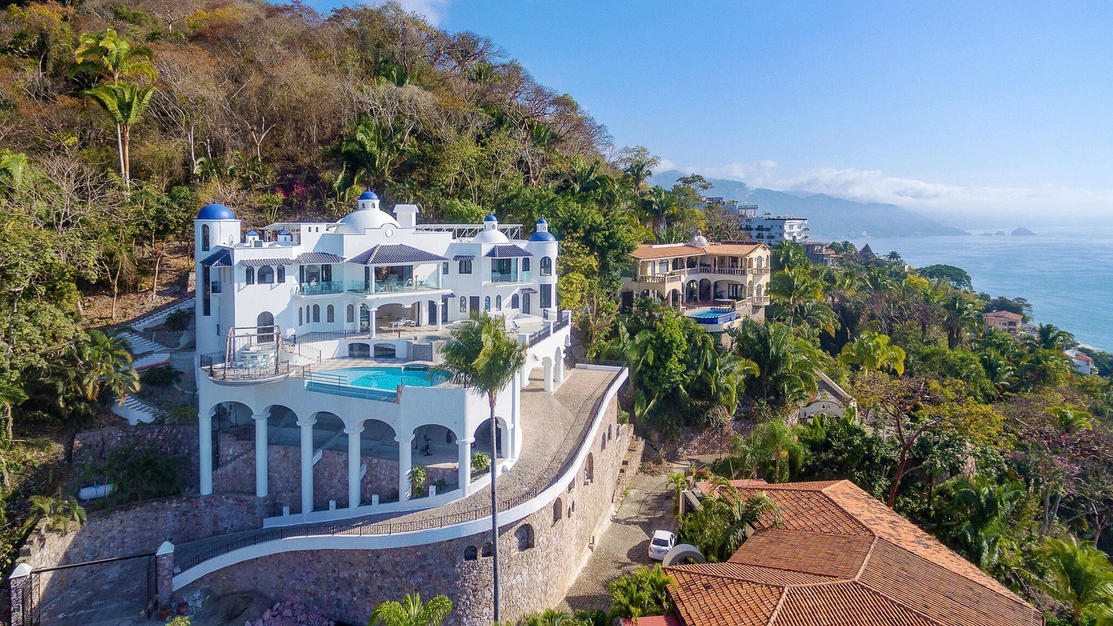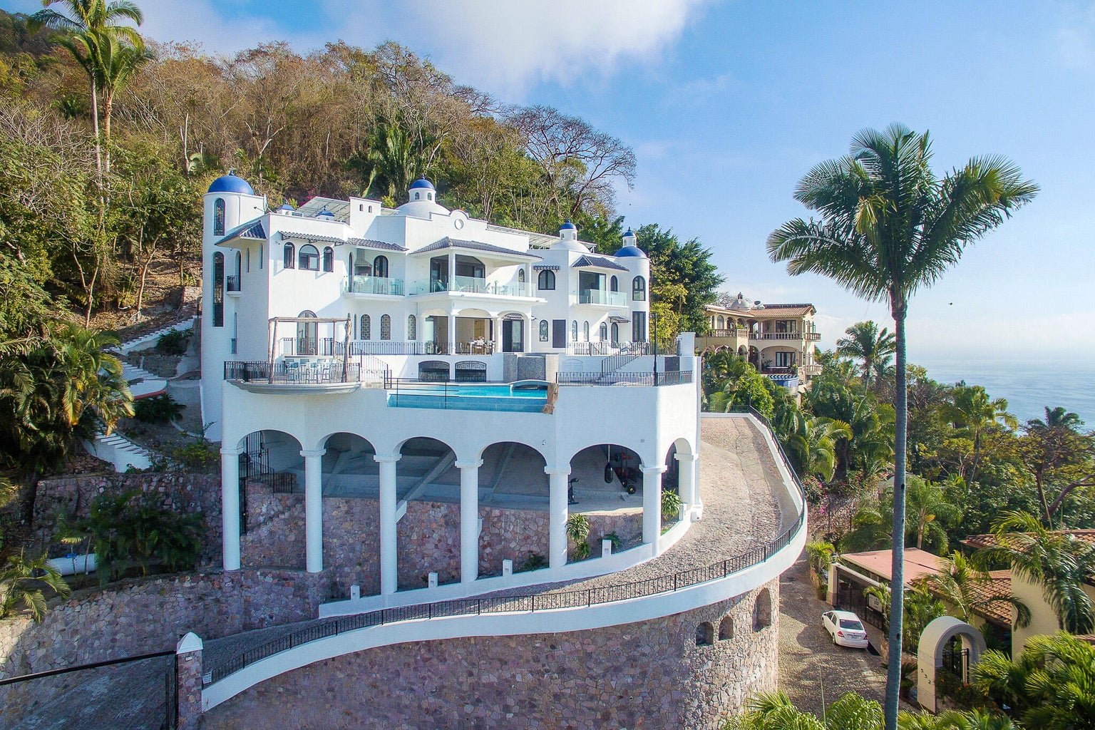 Designed as a haven for owners seeking their privacy while enjoying a “Top-of-the-World” 270-degree view of the Ocean, City, Jungle and Mountains, this Modern Estate is breathtaking. This stunning remodel of a classical Mexican Colonial gives the property a luxurious Contemporary exterior and a stunning California-inspired interior. Expansive Great Room and Grand Terrace for entertaining. Solar panels supplement the existing utilities. Tempered glass windows and doors efficiently climate-control the villa. Contains all modern conveniences for luxurious living in the tropics. Professionally-designed, state-of-the-art kitchen, stained glass windows, towering columns, high ceilings, dramatic cupolas, interior elevator shaft available. Parking level has room for 4-5 cars. Sold Minimally Furnished.