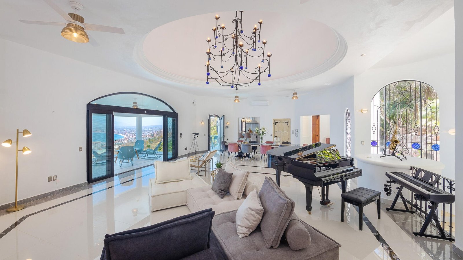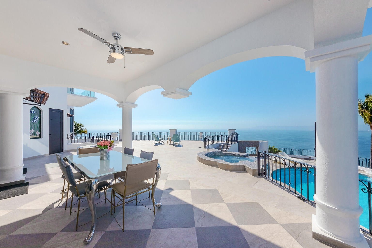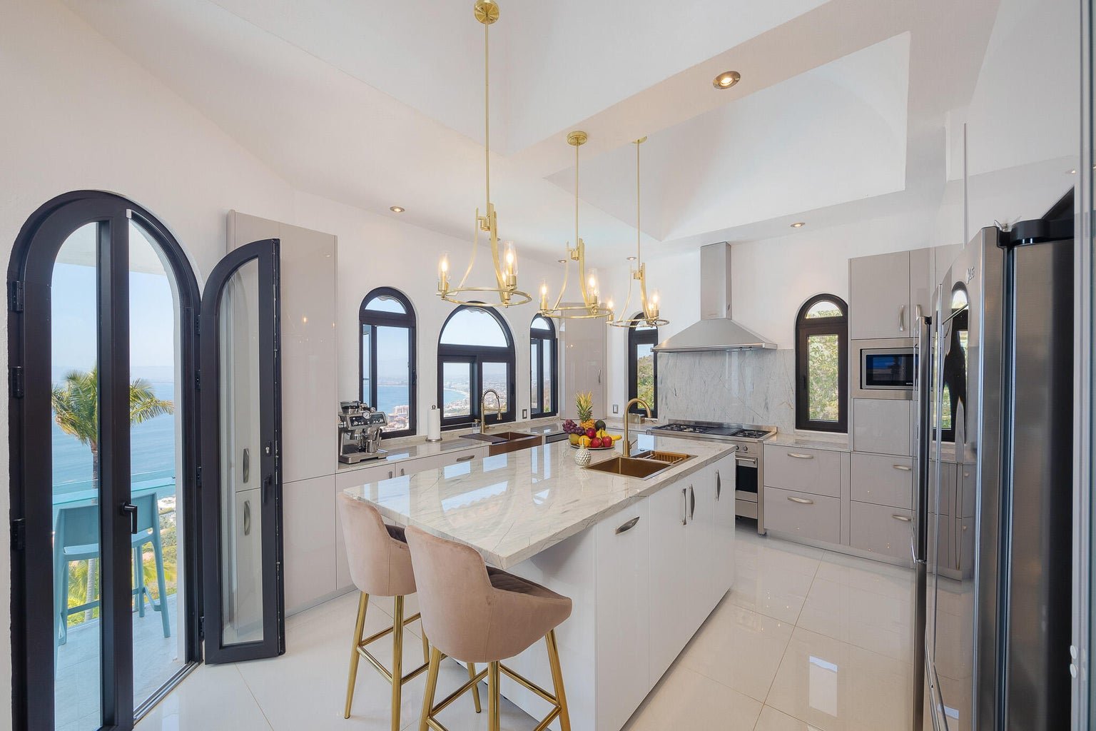 Designed as a haven for owners seeking their privacy while enjoying a “Top-of-the-World” 270-degree view of the Ocean, City, Jungle and Mountains, this Modern Estate is breathtaking. This stunning remodel of a classical Mexican Colonial gives the property a luxurious Contemporary exterior and a stunning California-inspired interior. Expansive Great Room and Grand Terrace for entertaining. Solar panels supplement the existing utilities. Tempered glass windows and doors efficiently climate-control the villa. Contains all modern conveniences for luxurious living in the tropics. Professionally-designed, state-of-the-art kitchen, stained glass windows, towering columns, high ceilings, dramatic cupolas, interior elevator shaft available. Parking level has room for 4-5 cars. Sold Minimally Furnished.