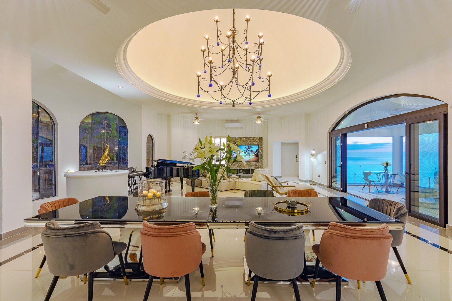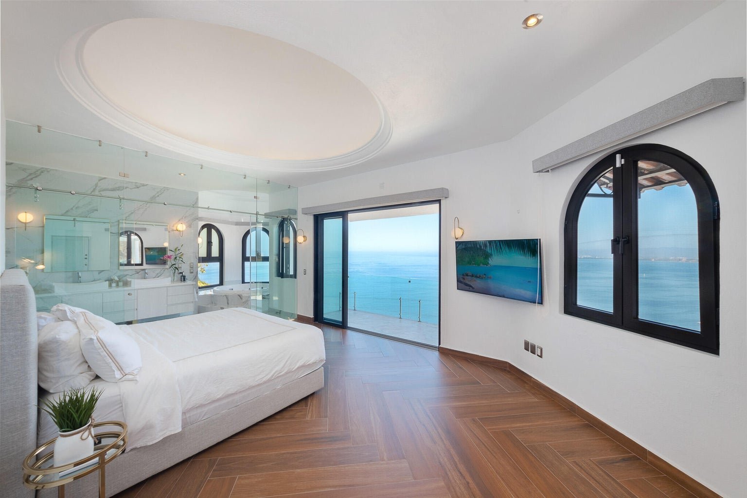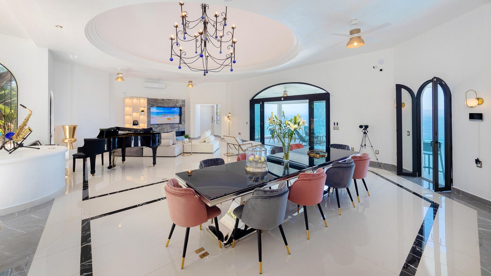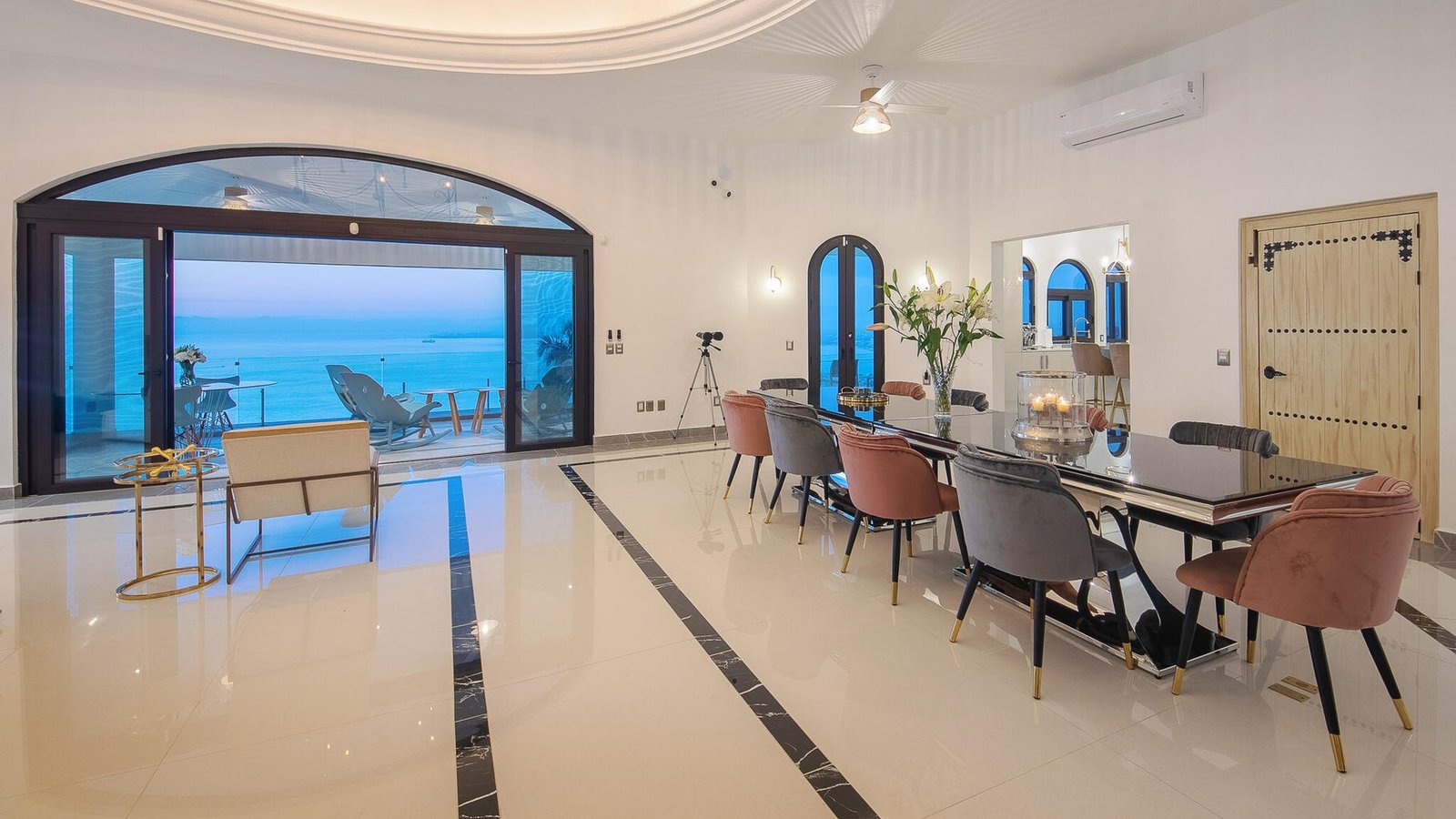 Designed as a haven for owners seeking their privacy while enjoying a “Top-of-the-World” 270-degree view of the Ocean, City, Jungle and Mountains, this Modern Estate is breathtaking. This stunning remodel of a classical Mexican Colonial gives the property a luxurious Contemporary exterior and a stunning California-inspired interior. Expansive Great Room and Grand Terrace for entertaining. Solar panels supplement the existing utilities. Tempered glass windows and doors efficiently climate-control the villa. Contains all modern conveniences for luxurious living in the tropics. Professionally-designed, state-of-the-art kitchen, stained glass windows, towering columns, high ceilings, dramatic cupolas, interior elevator shaft available. Parking level has room for 4-5 cars. Sold Minimally Furnished.